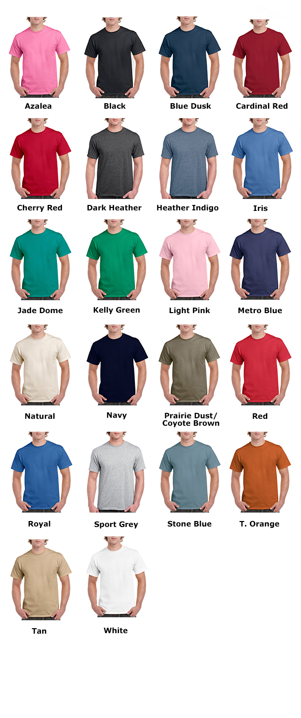 Available Colour : Sport Grey, Jade Dome, Black, Red, Dark Heather, Royal, Navy, Azalea, White, Blue Dusk , Metro Blue , Prairie Dust/Coyote Brown , Cardinal Red, Iris, Stone Blue, Light Pink, Kelly Green, Heather Indigo, Cherry Re , Natural, Tan and Texas Orange