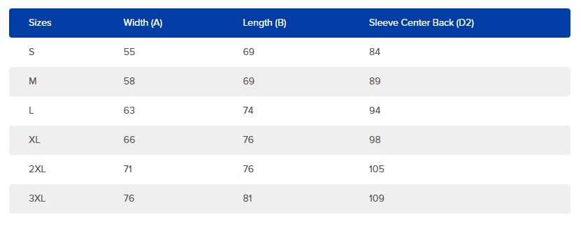 Please note: measurements can vary within +/- 2-2.5cm, which is within Gildan's accepted tolerance.