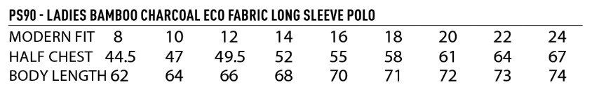 Bamboo Charcoal Eco Fabric Long Sleeve Polo made from 165gsm interlock fabric (50% polyester, 50% bamboo charcoal).