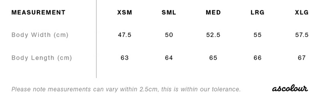 Please note: measurements vary by up to 2.5cm, which is within AS Colour's accepted tolerance.