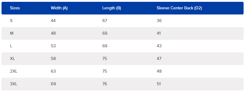 Please note: measurements can vary within +/- 2-2.5cm, which is within Gildan's accepted tolerance.